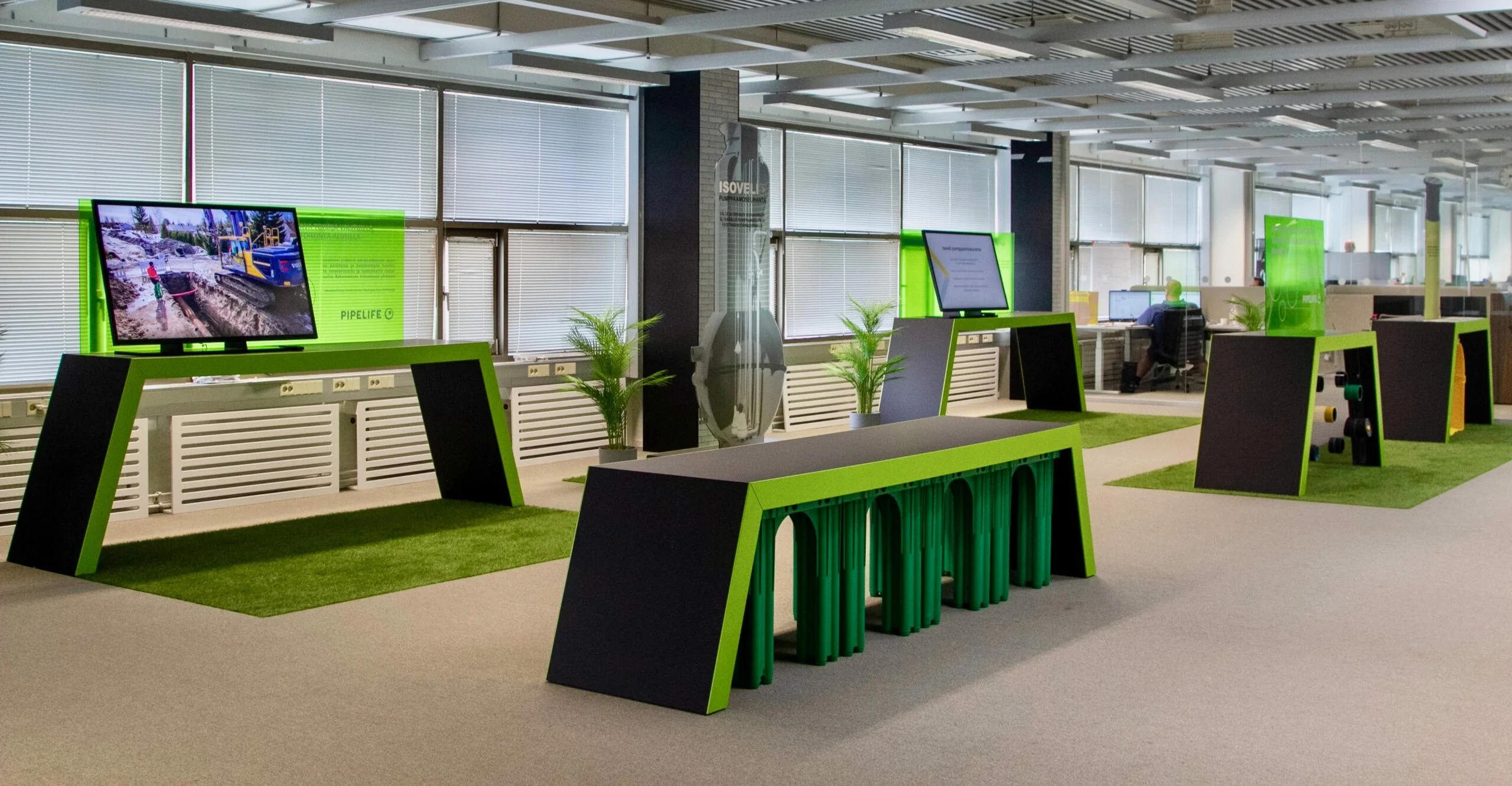 Tarkoitukseen ideoitiin neljä luokseen kutsuvaa pienoiskylpyhuonetta;